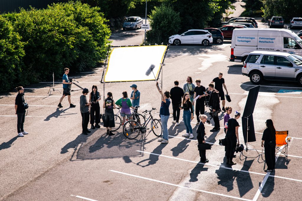 Die Dreharbeiten fanden im Sommer 2025 statt. Dabei wechselten wir zu dritt die Rollen als Settonmeister und Boom Operator ab. Gelegentlich unterstützten auch andere Kolleg:innen vom Set als Boom Operator.